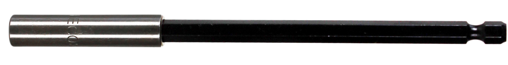 Standard Quicklock adaptor med magnet og låsering i lang udførsel. Bitsen frigøres ved at skubbe låseringen frem