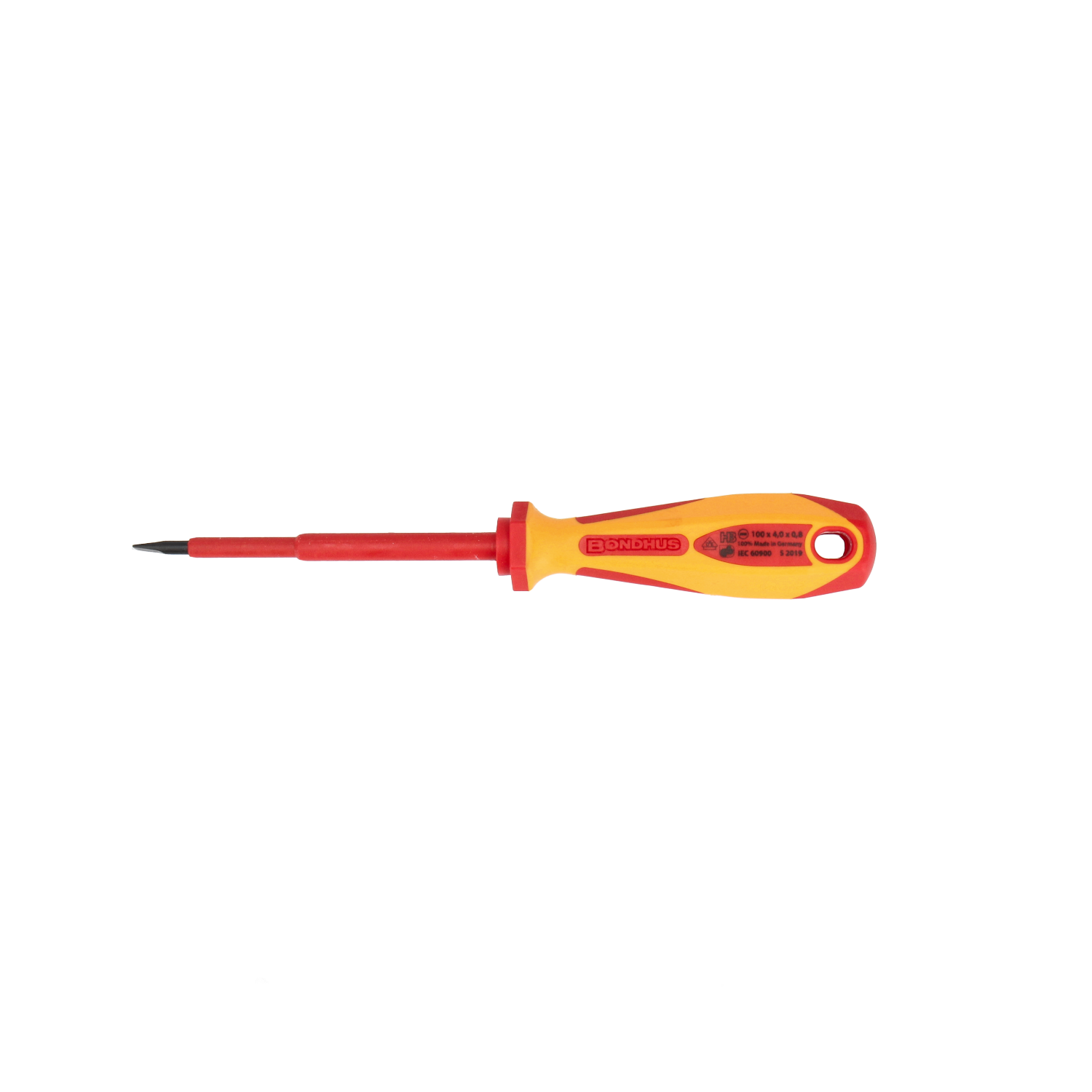 VDE skruetrækker med isoleret klinge godkendt og testet til 1000V. 2 komponent greb med antiskrid overflade.