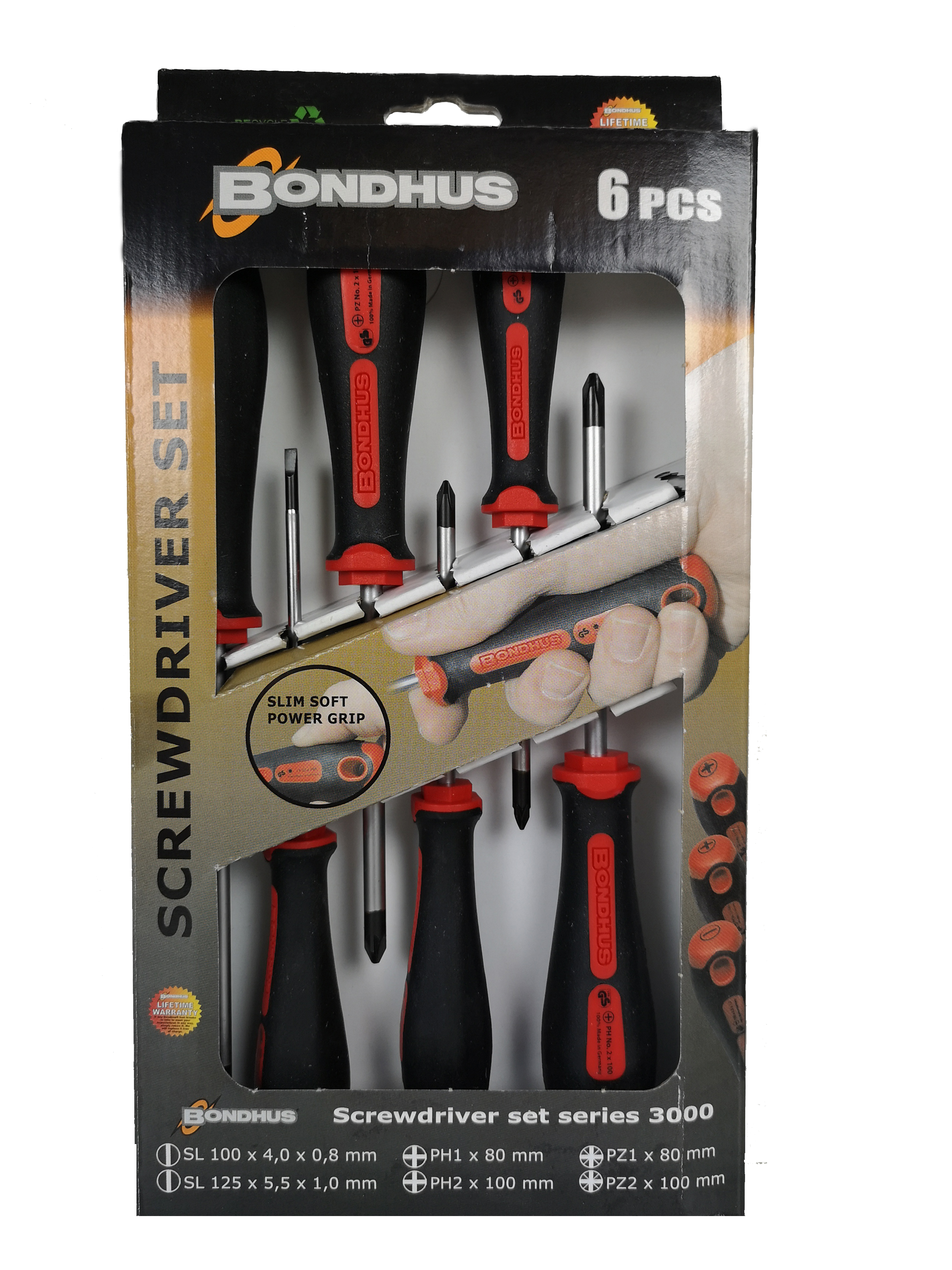Skruetrækkersæt med 6 dele Powergrip, Lige, PH, PZ.