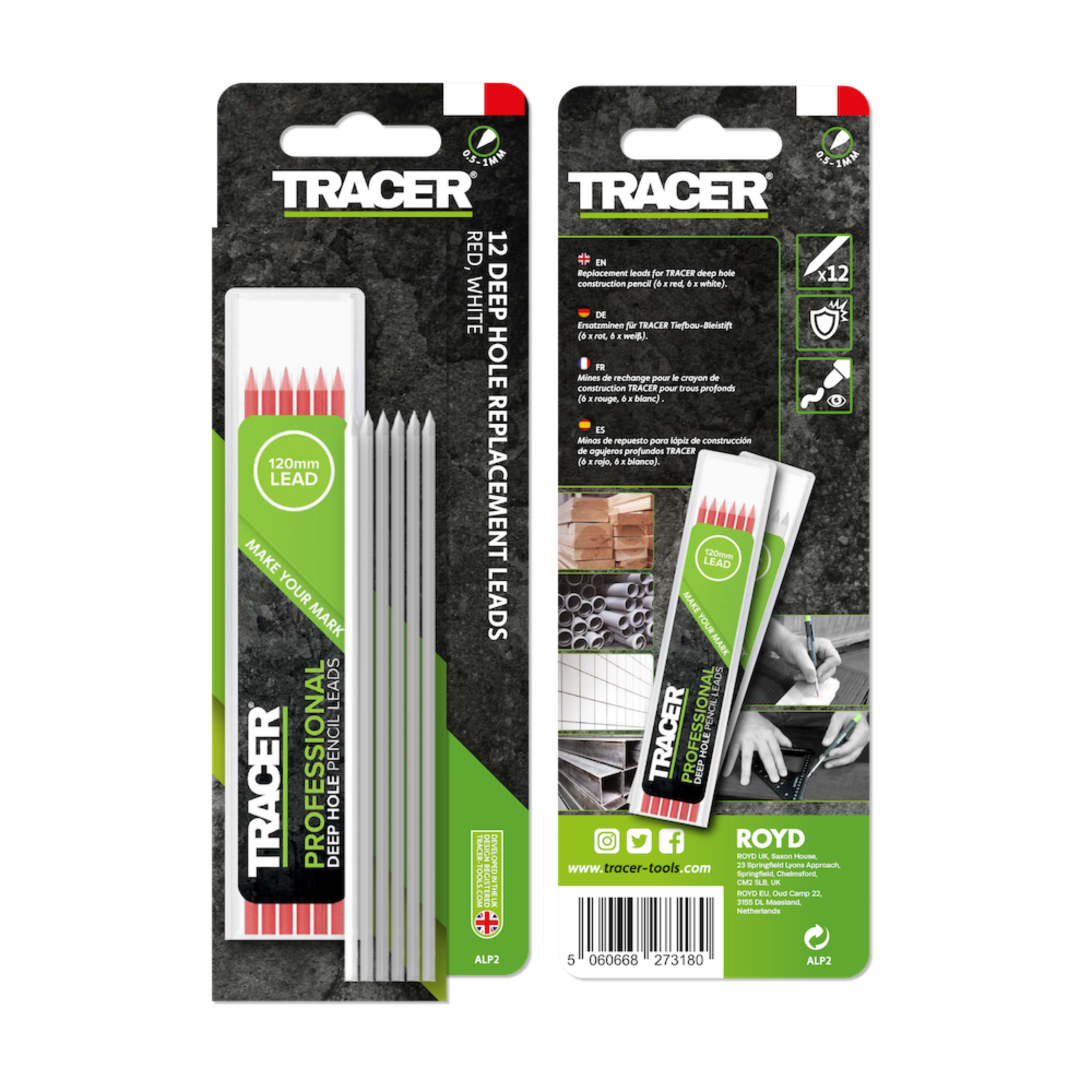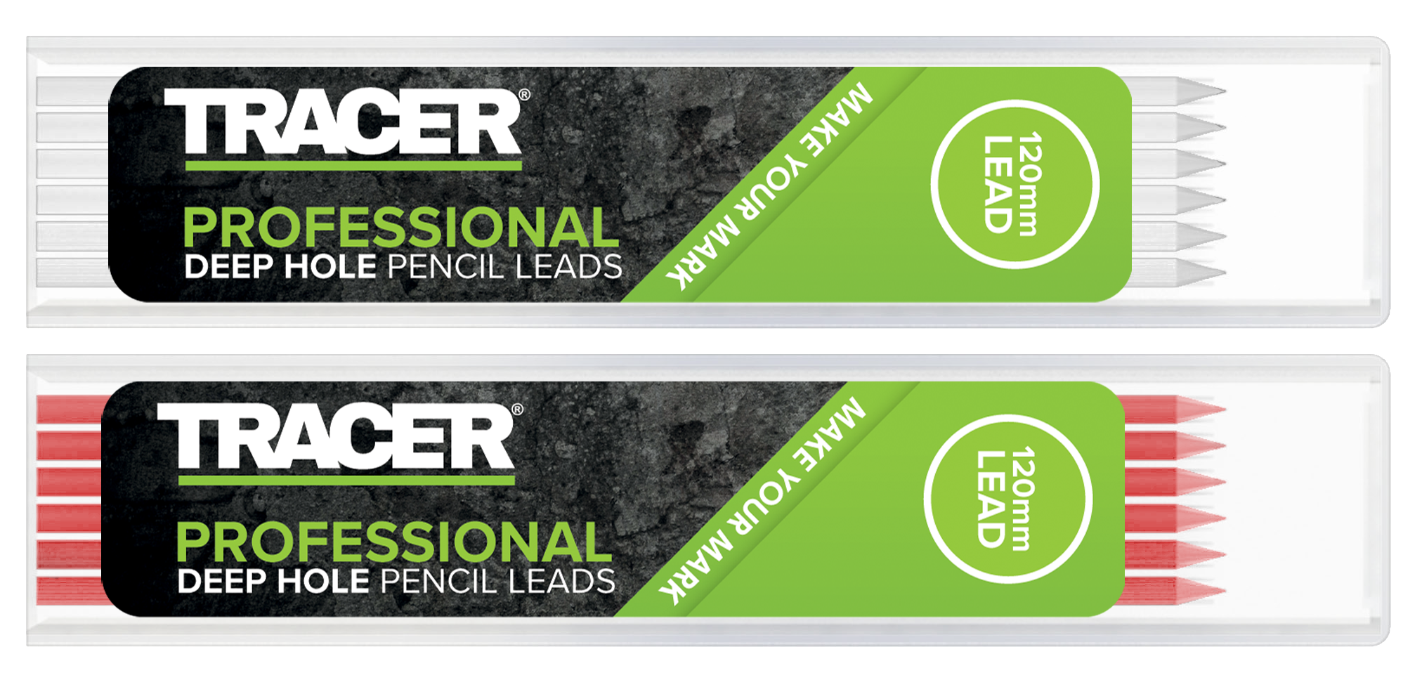 Tracer 12 stifter til dybhulssblyant rød og hvid. I æske. 10 æsker i disply