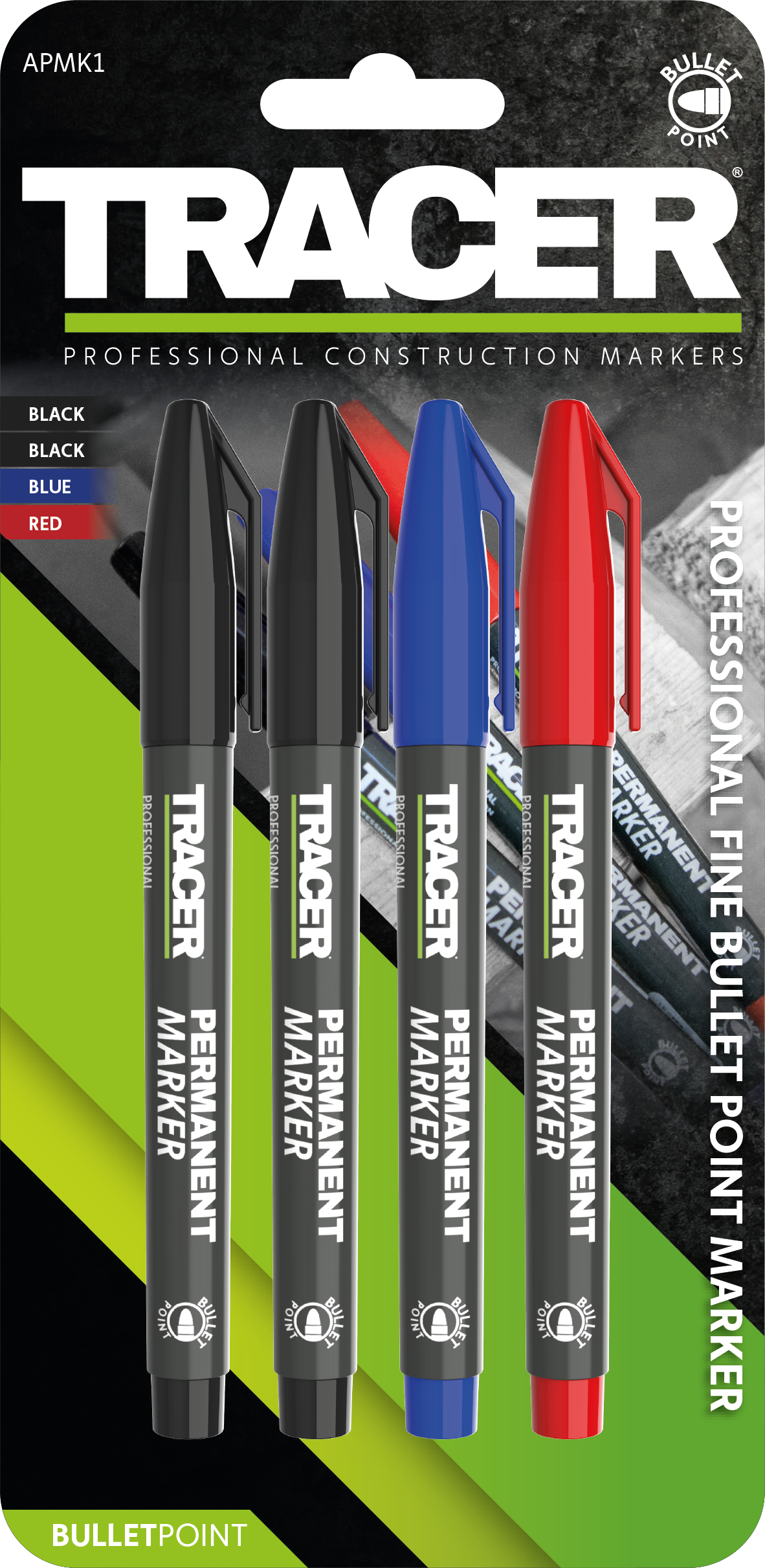 Tracer permanent tusch 2xsort, 1xrød, 1xblå. I æske. 10 æsker i display.