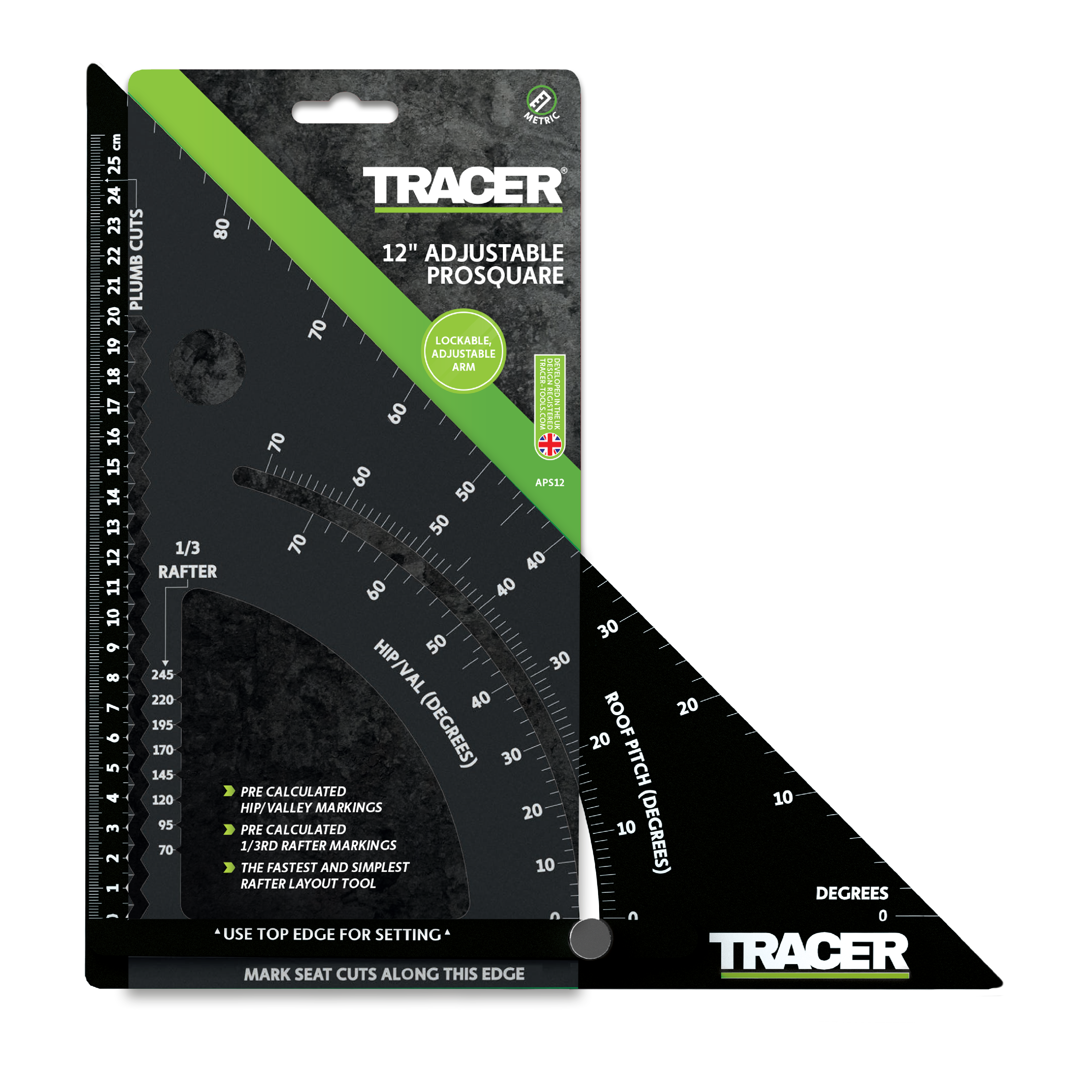 Justerbar Pro Square er det hurtigste og nemmeste værktøj til afmærkning af com-, jack-, hip- og valley-snit.