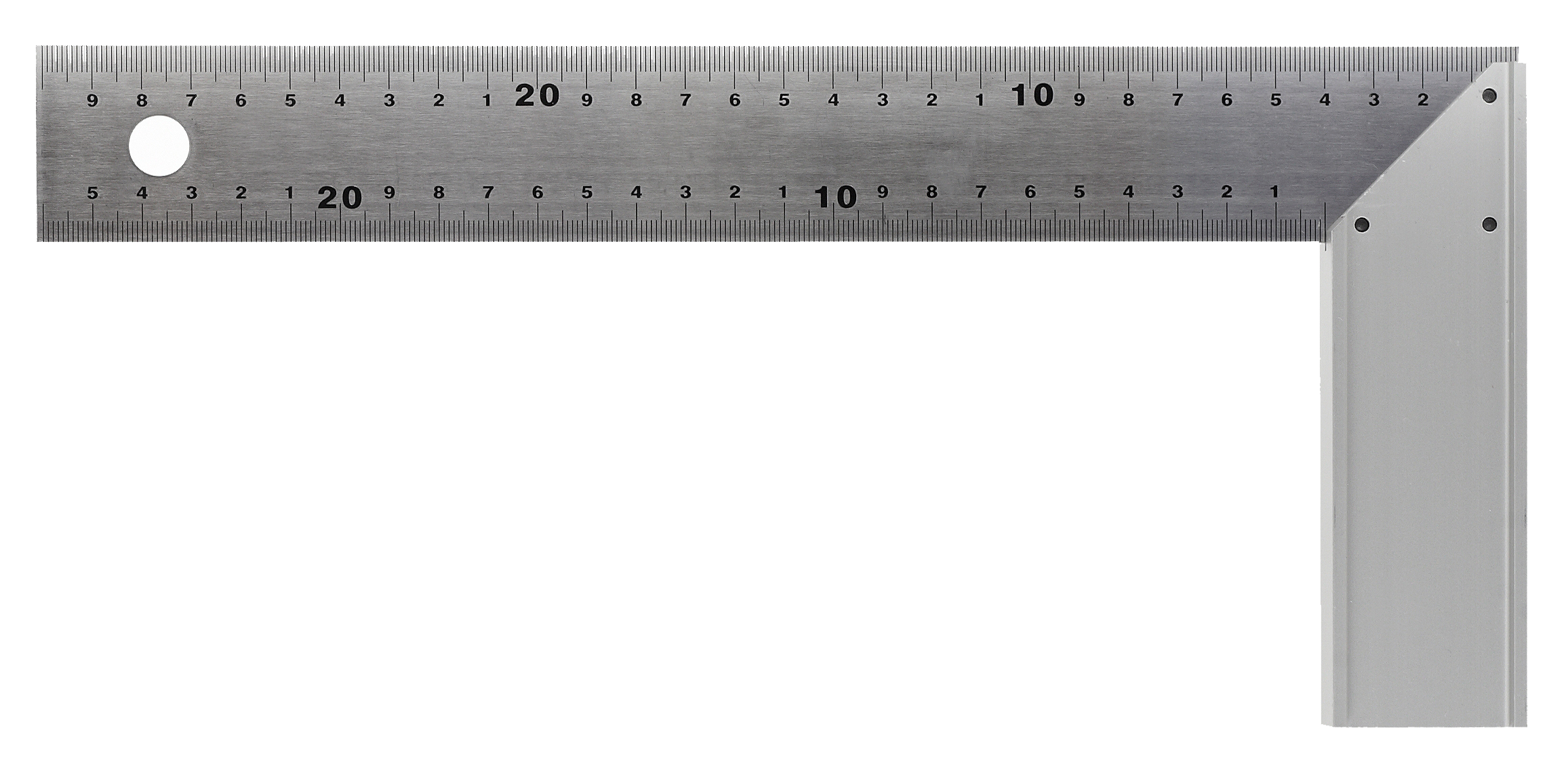 Ansatsvinkel også kaldet snedkervinkel fremstillet med blad i rustfrit stål og anslag i aluminium. Indvendig og udvendig gradering er lasergraveret i stålet for ekstra lang holdbarhed.