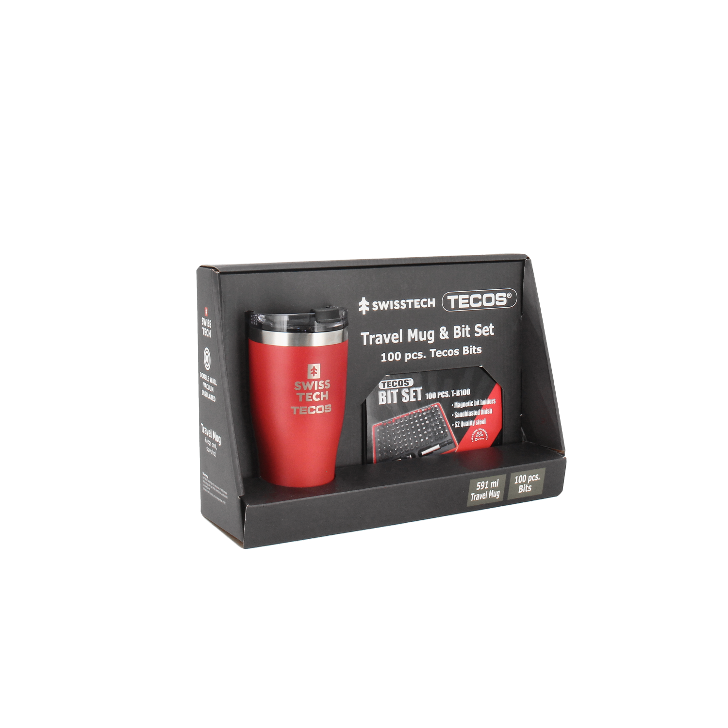 Sæt med Swisstech Termokop (591 ml) og Tecos bitssæt med 100 dele