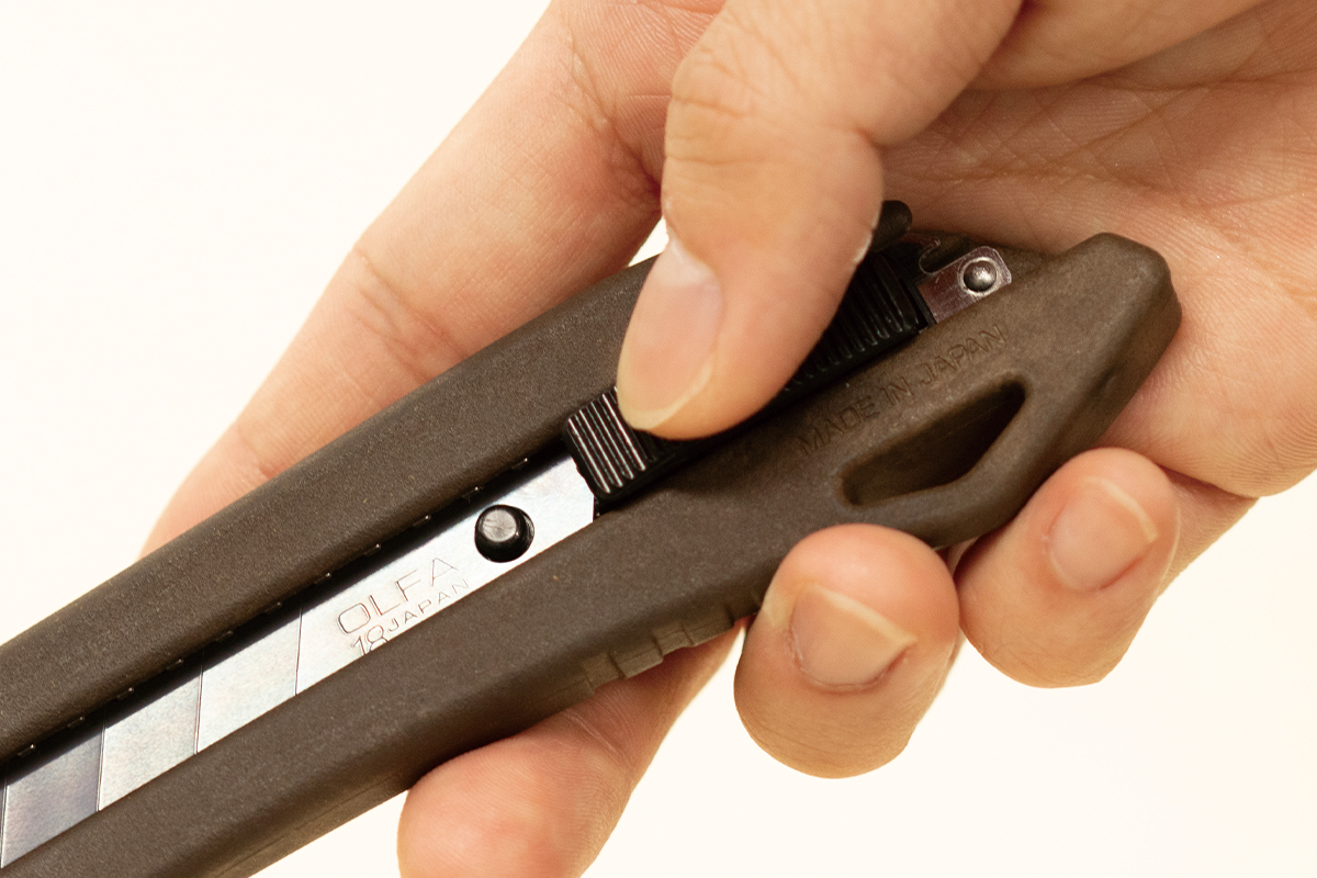 Woody – en bræk-af kniv hvor håndtaget er produceret med 70% træmasse. Helt miljø rigtigt tænkt, og ikke mindst giver den en overflade der sikrer meget stor friktion og dermed et sikkert greb.