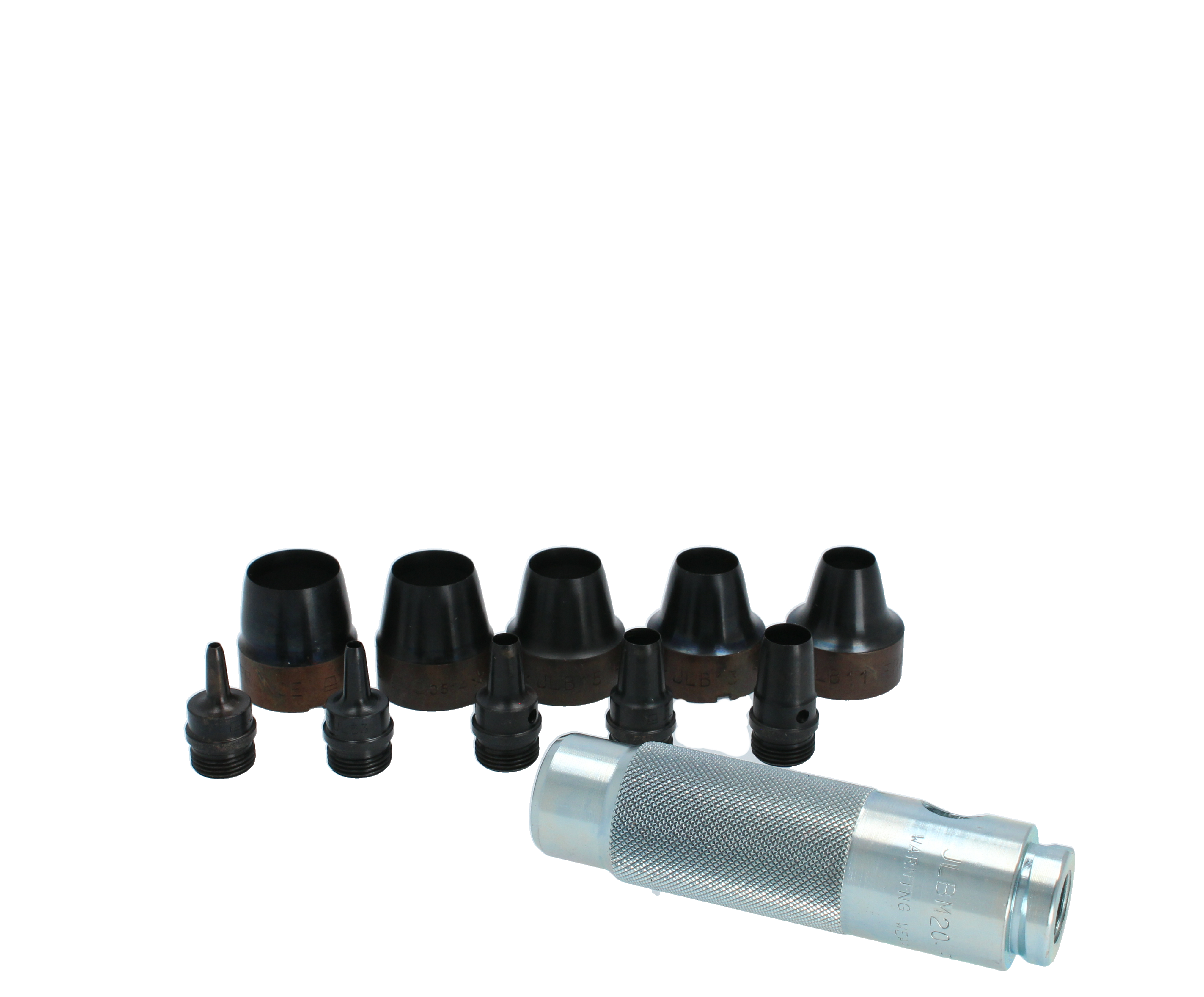 Patenteret system til lynhurtig udskiftning af huggepibe størrelse.
