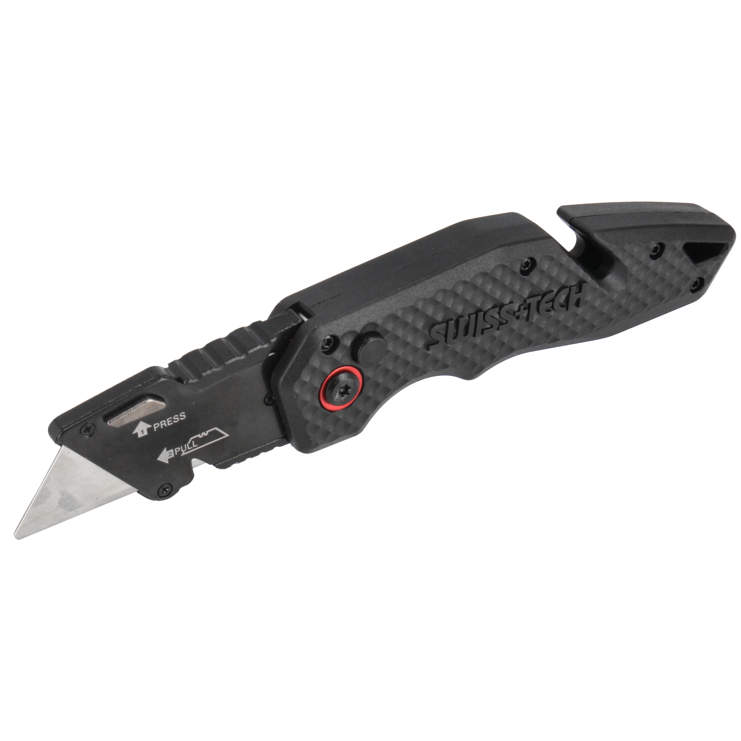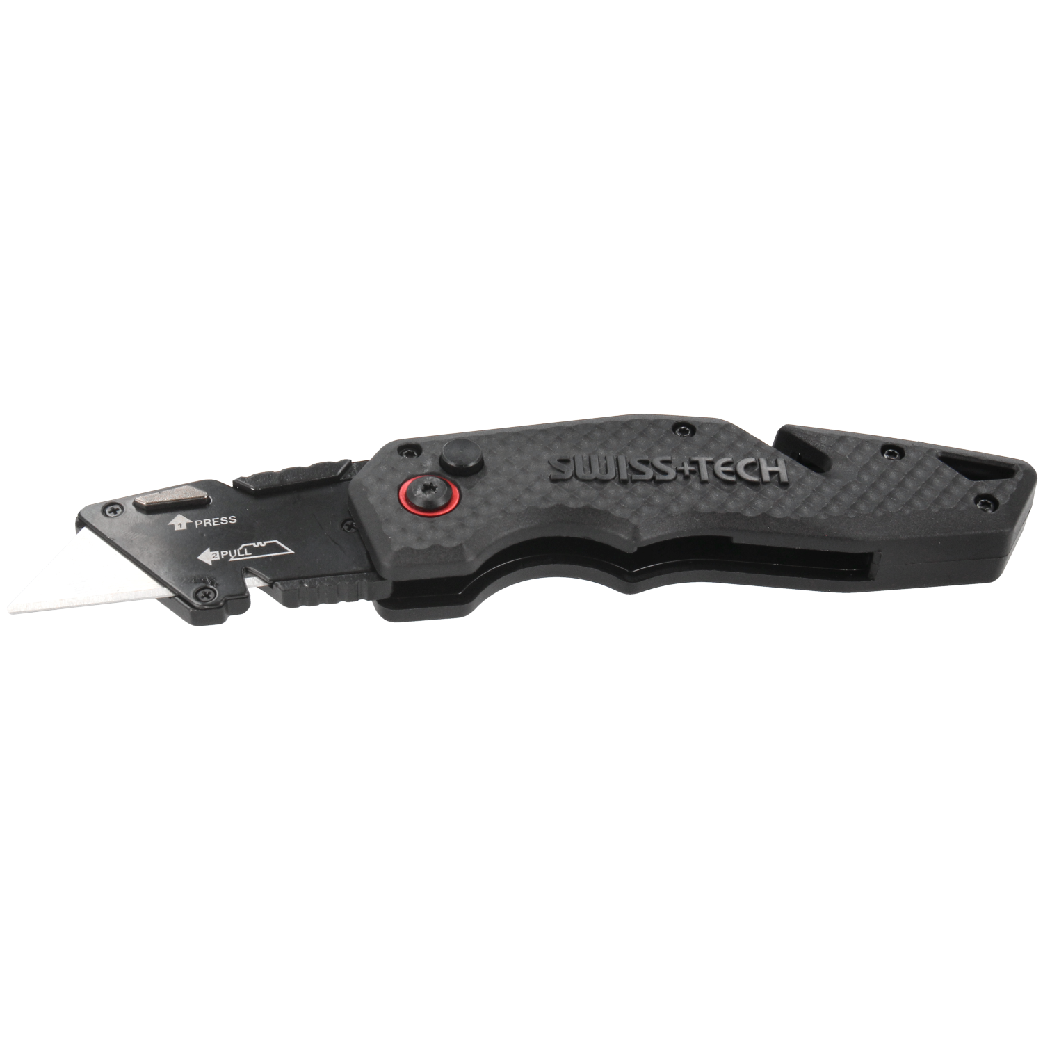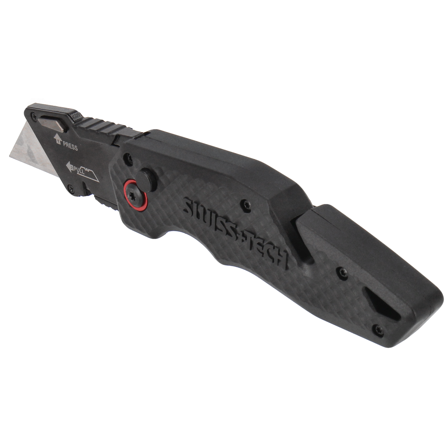 Kniven har et godt og fingerformet greb. Håndtaget er fremstillet af nylonfiber som giver en høj styrke, men en utrolig lethed. Med en tommelfingerplade på knivens overkant kan du arbejde med højt tryk på kniven. Kniven lukkes nemt med et tryk på siden af kniven. Derfor kan du opbevare kniven sikkert uanset om det er i værktøjskassen eller i lommen.