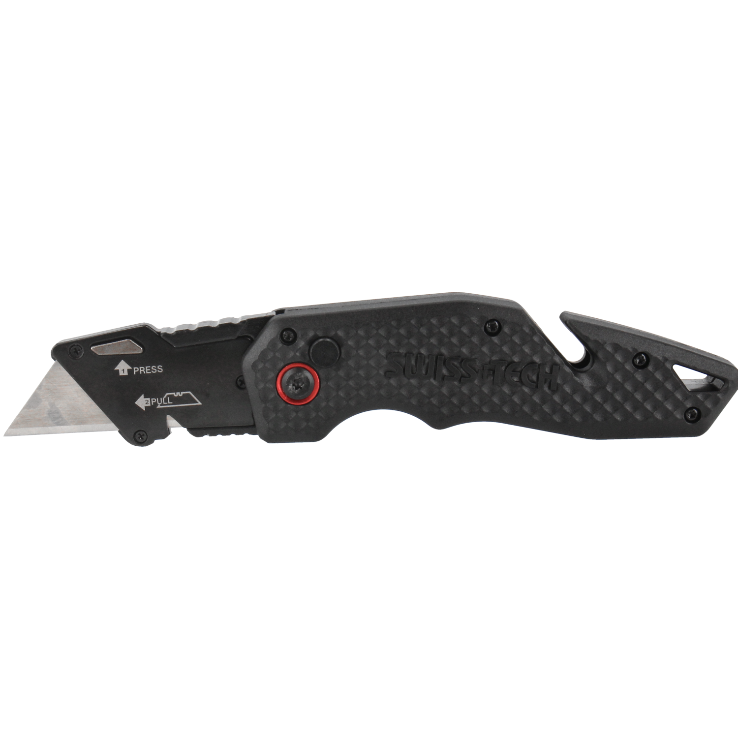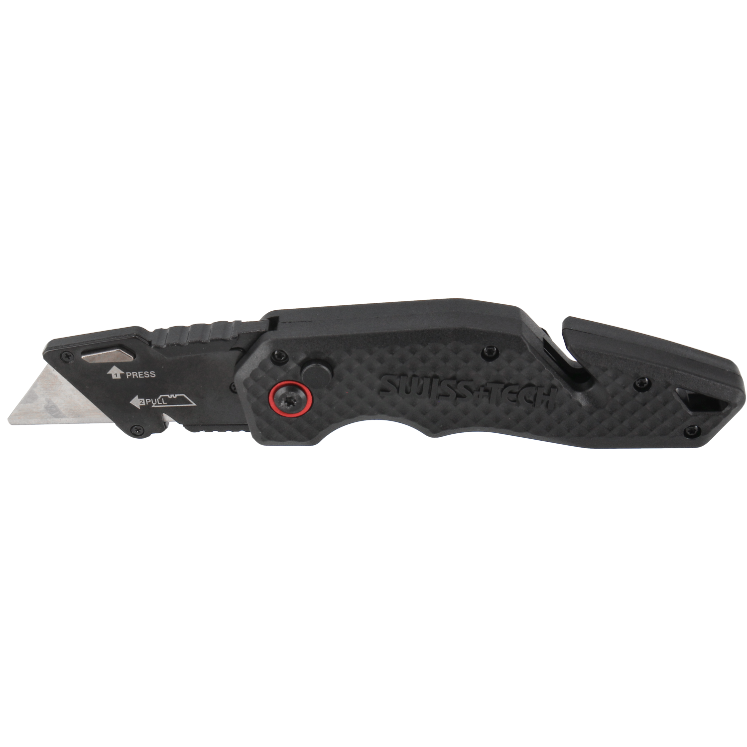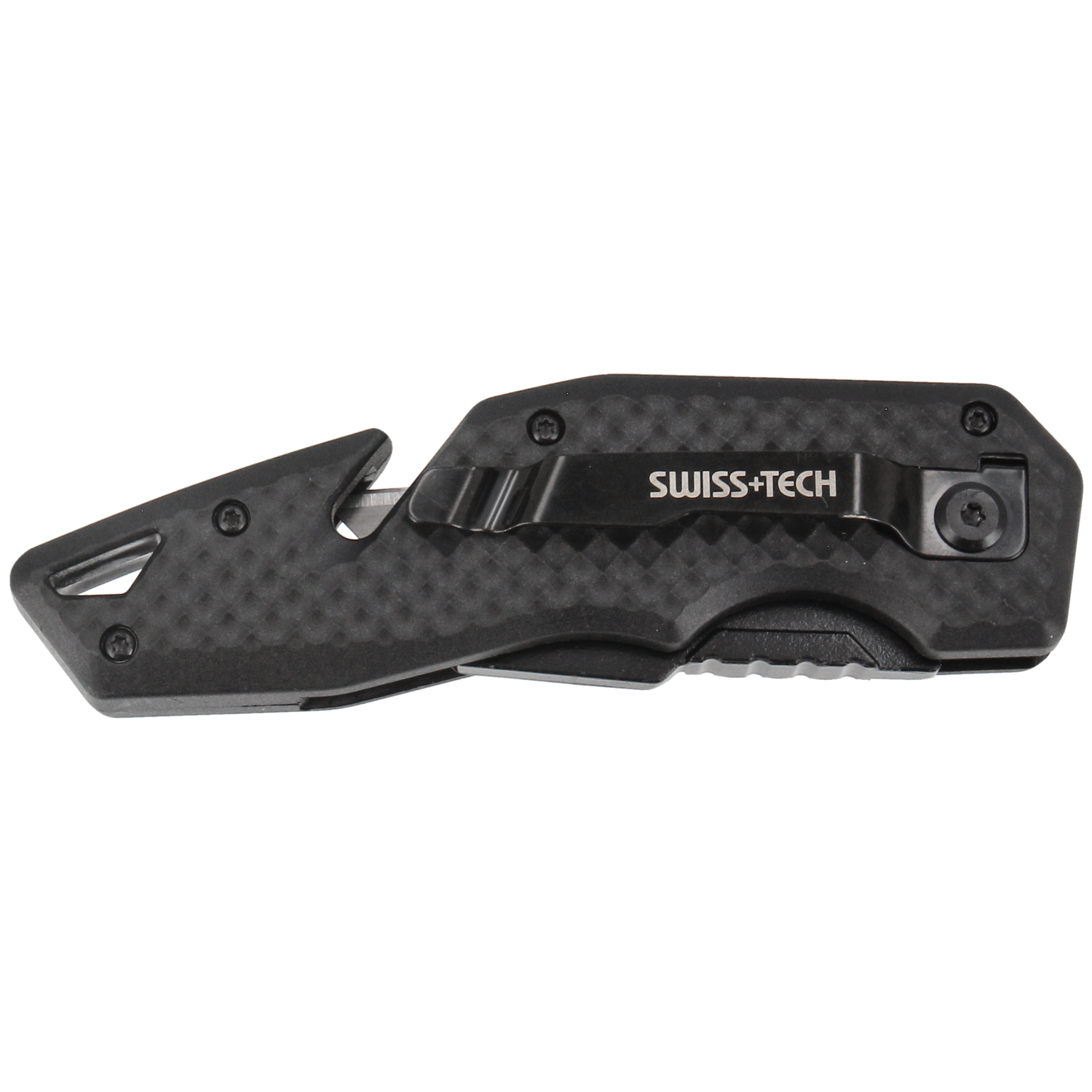 Kniven har et godt og fingerformet greb. Håndtaget er fremstillet af nylonfiber som giver en høj styrke, men en utrolig lethed. Med en tommelfingerplade på knivens overkant kan du arbejde med højt tryk på kniven. Kniven lukkes nemt med et tryk på siden af kniven. Derfor kan du opbevare kniven sikkert uanset om det er i værktøjskassen eller i lommen.
