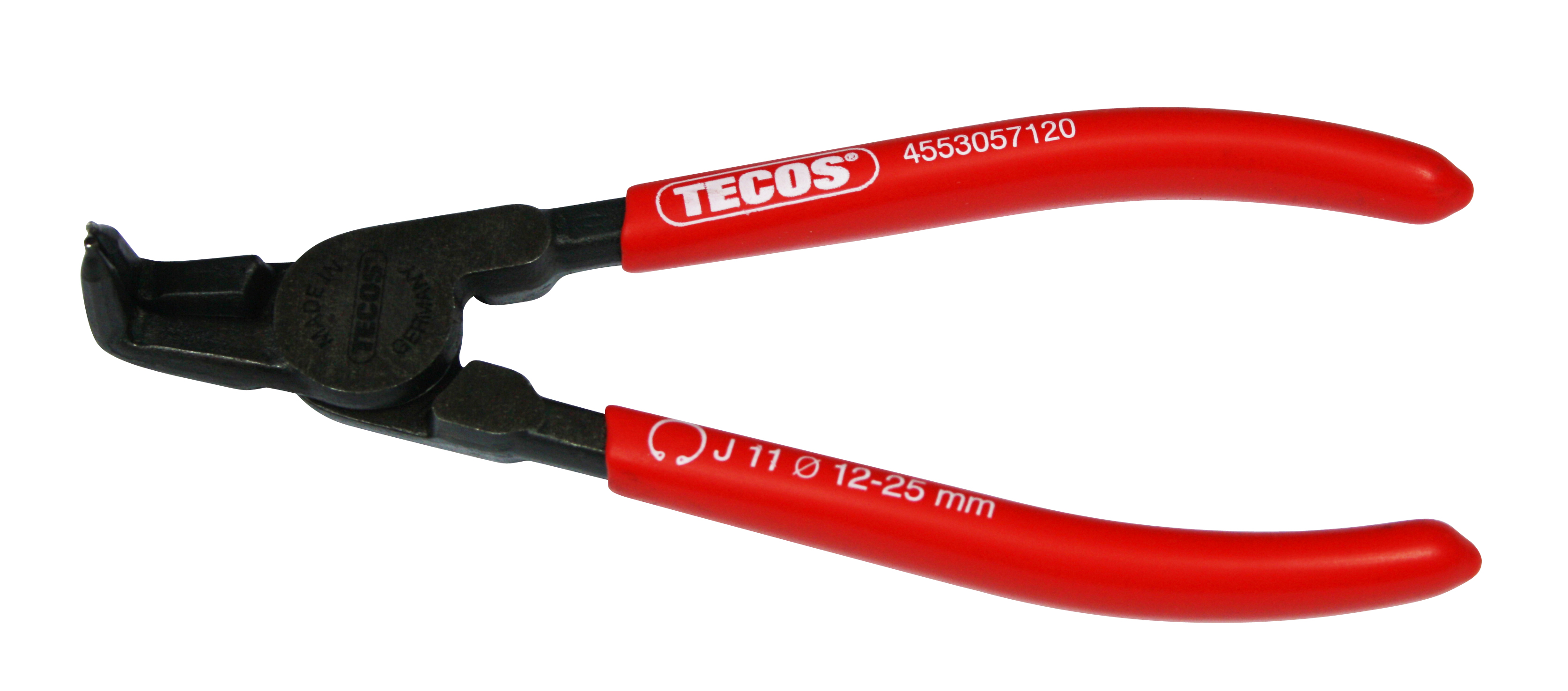 Låseringstang med bøjede kæber til montage af indvendige låseringe.