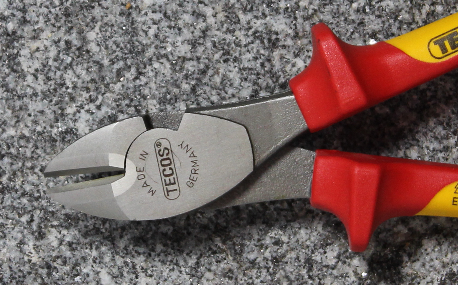 Tecos Kraftig skævbidertang til arbejde med hårdere materialer. VDE godkendt.