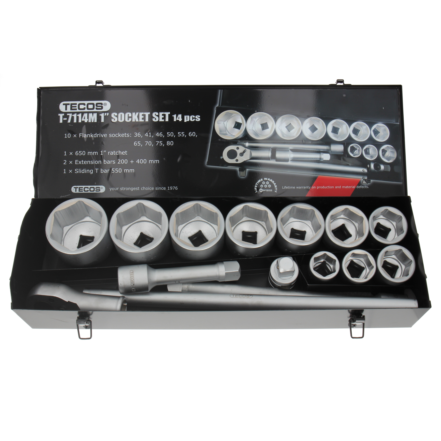 Topnøglesæt med dobbelt 6 kant toppe i store størrelser med skralde, forlænger og Tglidegreb.