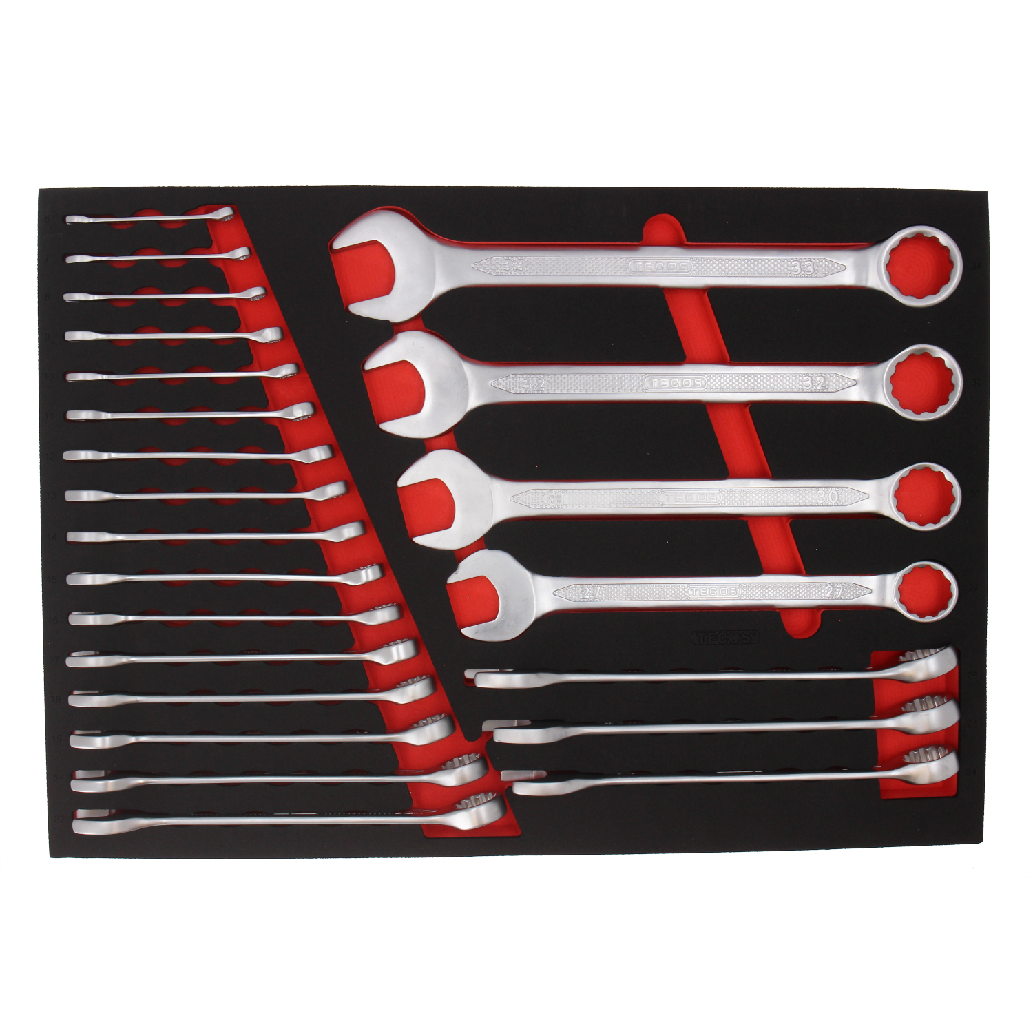 Tecos Ringgaffelnøglesæt 633 mm, 23 dele EVA indlæg.