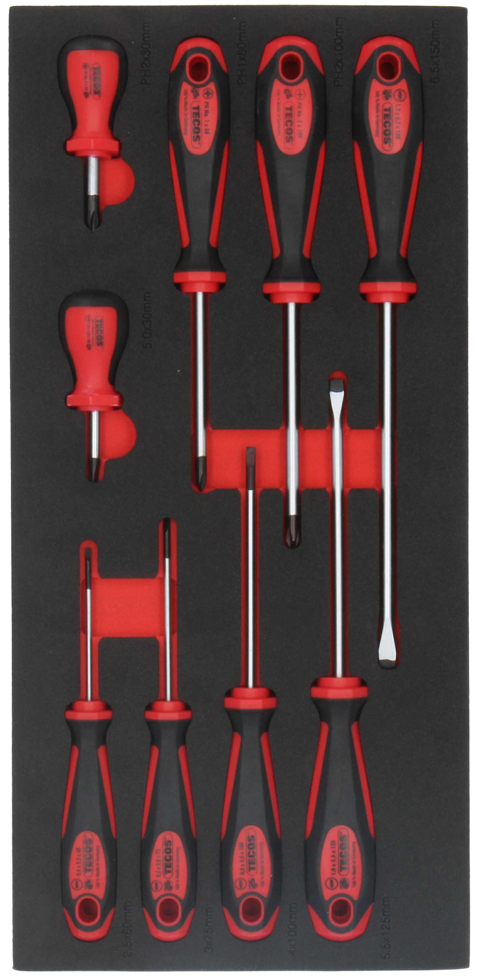 Tecos Skruetrækkersæt med ergonomisk håndtag 9 dele EVA indlæg.